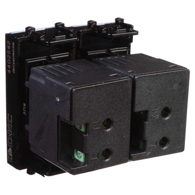 USB зарядное устройство модульное. Назначение: для монтажа в систему кабельных коробов "In-liner Front", систему алюминиевых кабельных коробов и колонн "Aero", лючки и башенки BUS, при помощи рамок-суппортов и каркасов "Avanti" (код 4400912 и т.д.); используется для подзарядки электронных гаджетов. Характеристики: винтовые зажимы; номинальное напряжение – 220 В; частота – 50–60 Гц; напряжение на выходе – 5 В; фиксация в подрозеточные коробки глубиной не менее 45 мм при помощи каркаса с лапками (код 4400802) и саморезов. Кол-во модулей: 2. Цвет: "Черный квадрат". Производитель оставляет за собой право вносить во внешний вид изделия изменения, которые не влияют на его функционал, безопасность и надежность.