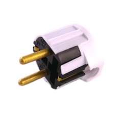 Монтажный элемент, аксессуар. Представляет собой разборный угловой штепсель. Цвет: белый. Применяется как элемент электроприборов, в том числе бытовой техники.