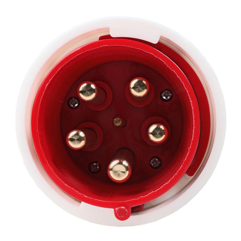 Силовая вилка 5 полюсная на номинальный ток 125 А и рабочее напряжение переменного тока 380 В.