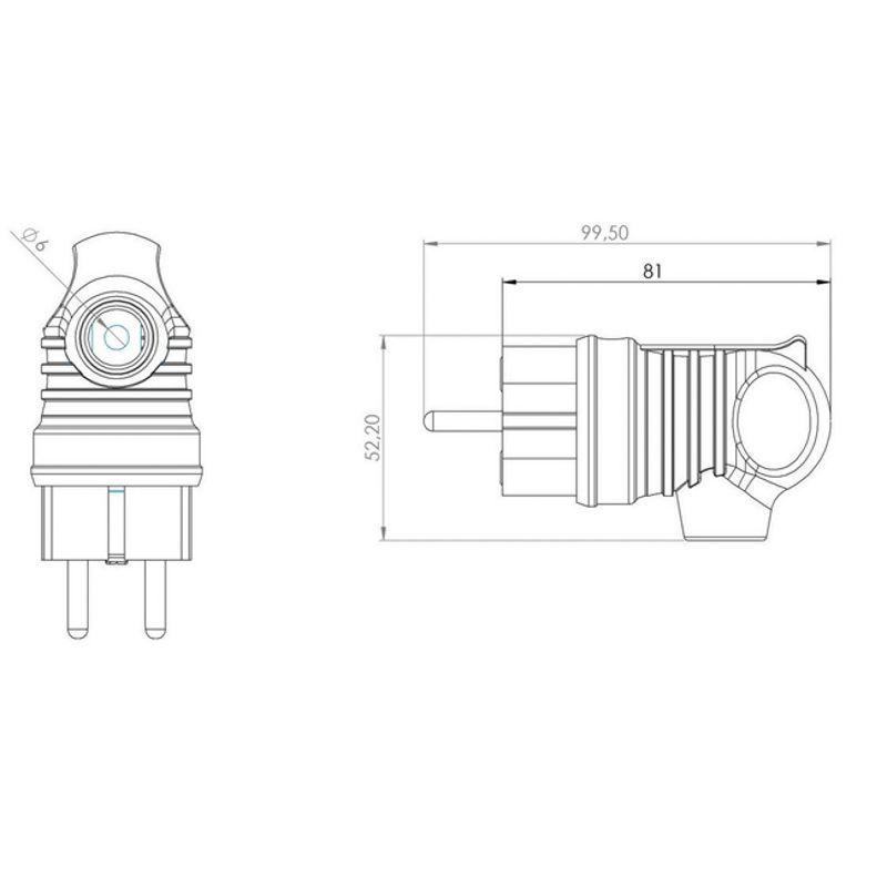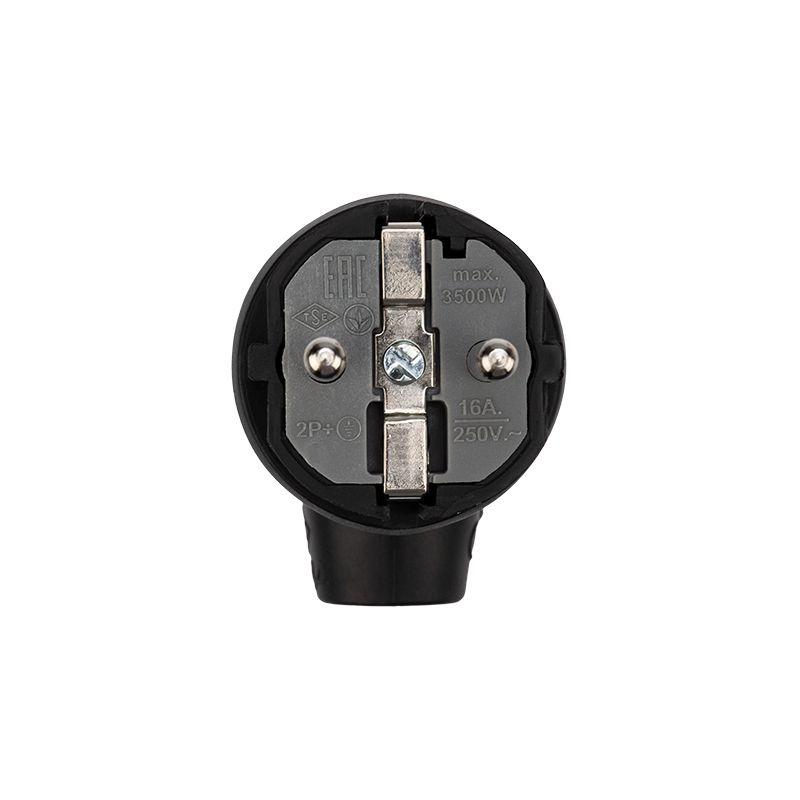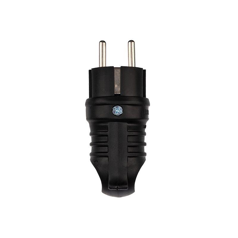 Угловая влагозащищенная электрическая вилка предназначена для подключения бытовых и профессиональных приборов к электросети. Вилка разработана для использования в сложных эксплуатационных условиях с высокой влажностью. Широко применяется в быту, на производстве и в строительстве. Степень защиты IP44 позволяет использовать вилку для организации электропитания под открытым небом, а в дождь – под навесом. Не допускается погружение в воду. Угловая форма вилки облегчает подключение в ограниченном пространстве и уменьшает износ кабеля. Кольцо на корпусе позволяет удобно вытаскивать вилку из розетки. Для обеспечения безопасности детали, соприкасающиеся с токоведущими частями выполнены из огнеупорного материала, устойчивого к температуре до +850 ?С. Ударопрочный разборный корпус выполнен из каучука: устойчив к ударам, вибрациям и другим механическим воздействиям. Заземление: есть. Сечение проводников: 0,75-2,5 мм2. Контактная группа: MS-58 (латунь). Тип полюсов: 2Р+РЕ.