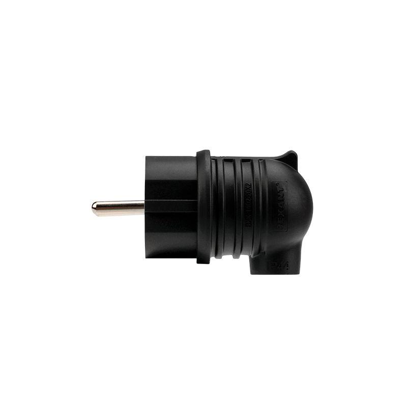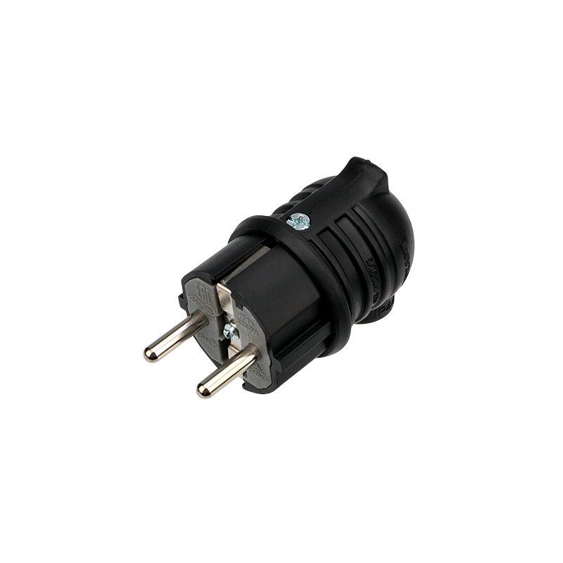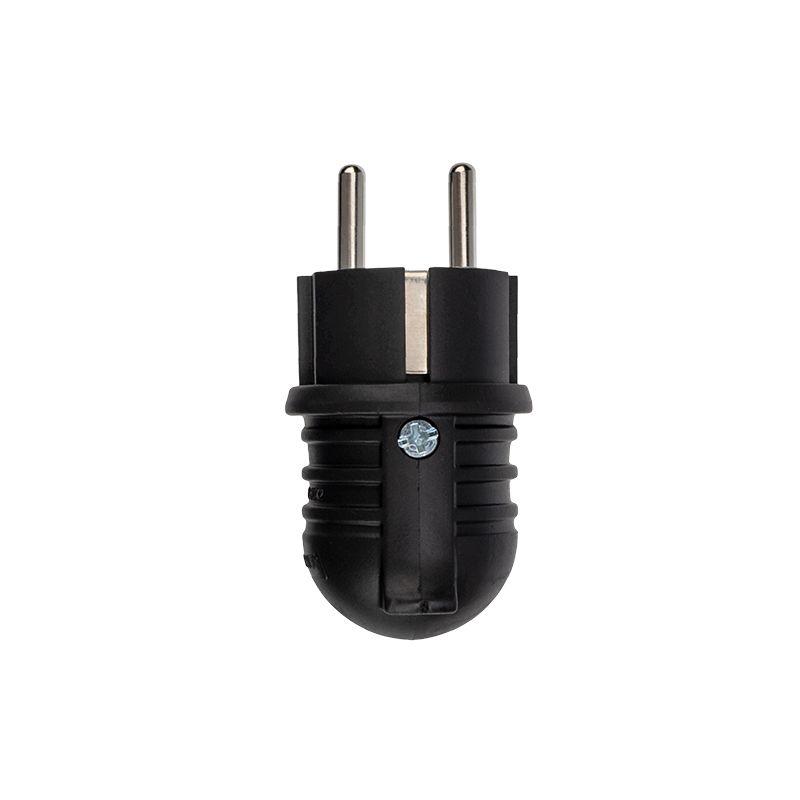 Угловая влагозащищенная электрическая вилка предназначена для подключения бытовых и профессиональных приборов к электросети. Вилка разработана для использования в сложных эксплуатационных условиях с высокой влажностью. Широко применяется в быту, на производстве и в строительстве. Степень защиты IP44 позволяет использовать вилку для организации электропитания под открытым небом, а в дождь – под навесом. Не допускается погружение в воду. Угловая форма вилки облегчает подключение в ограниченном пространстве и уменьшает износ кабеля. Для обеспечения безопасности детали, соприкасающиеся с токоведущими частями выполнены из огнеупорного материала, устойчивого к температуре до +850 ?С. Ударопрочный разборный корпус выполнен из каучука: устойчив к ударам, вибрациям и другим механическим воздействиям. Заземление: есть. Сечение проводников: 0,75-2,5 мм2. Контактная группа: MS-58 (латунь). Тип полюсов: 2Р+РЕ.