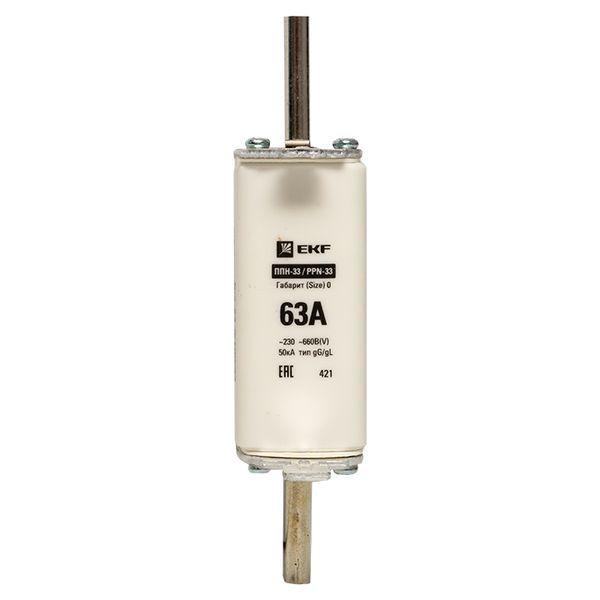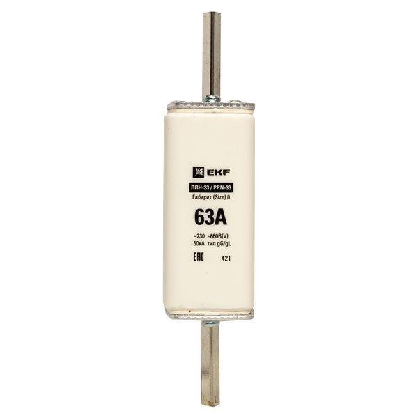 Плавкая вставка ППН-33 160/ 63А габарит 0 EKF. Предохранители плавкие ППН EKF, укомплектованные плавкими вставками типа gG/gL, предназначаются для защиты кабельных линий и промышленных электроустановок от токов перегрузки и короткого замыкания. Предохранители применяются в электрических сетях переменного тока частотой 50 Гц с напряжением до 660В. Применяются для крепления в распределительных и вводно-распределительных устройствах. Предохранители плавкие ППН могут устанавливаться в основание с держателем, а также в специально предназначенные рубильники. В комплект поставки предохранителей плавких ППН основание с держателем не входит и приобретается отдельно.