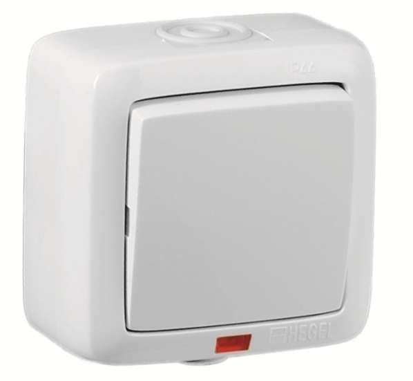 Выключатель 1-кл. ОП Альфа 10А IP44 250В с индикацией бел. HEGEL ВА10-212