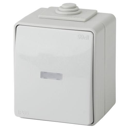 Выключатель влагозащищённый 1-клавишный с подсветкой серии Эра Эксперт накладн IP65 цвет серый 11-1602-03. Номинальные характеристики 10А 250В. Выполнен из качественного поликарбоната, оснащён уникальными винтовыми клеммами ЭКСПЕРТ для максимально качественного зажима кабеля в механизме.