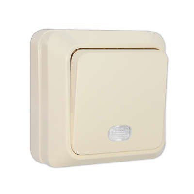 Выключатель 1-кл. ОП Олимп 10А IP20 с подсветкой сл. кость UNIVersal Б-О0121