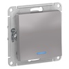 Механизм выключателя 1-клавишного с подсветкой Systeme Electric (ранее Schneider Electric) серии AtlasDesign в цвете алюминий подходит для сетей 250 В, на ток 10 А. - Благодаря светодиодной подсветке синего цвета изделие легко найти в темноте. - Усиленные прямые монтажные лапки для лучшей фиксации механизма в монтажной коробке. - Лицевые детали из качественного ABS-пластика, устойчивого к царапинам и УФ-излучению.