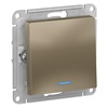 Механизм выключателя 1-клавишного с подсветкой Systeme Electric (ранее Schneider Electric) серии AtlasDesign в цвете шампань подходит для сетей 250 В, на ток 10 А. - Благодаря светодиодной подсветке синего цвета изделие легко найти в темноте. - Лицевые детали из качественного ABS-пластика, устойчивого к царапинам и УФ-излучению. - Усиленные прямые монтажные лапки для лучшей фиксации механизма в монтажной коробке.