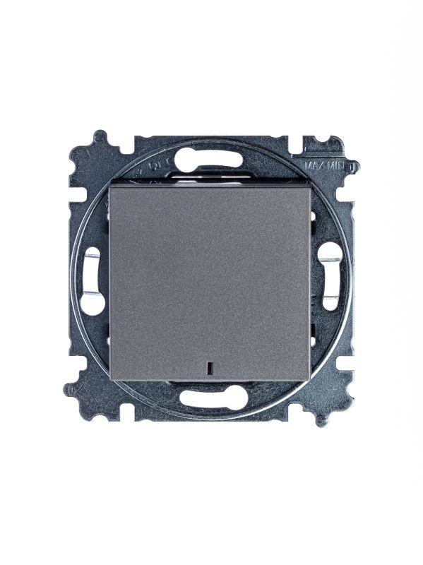 Выключатель 1-кл. СП Levit IP20 с подсветкой сталь/дым. черн. ABB 2CHH590146A6069
