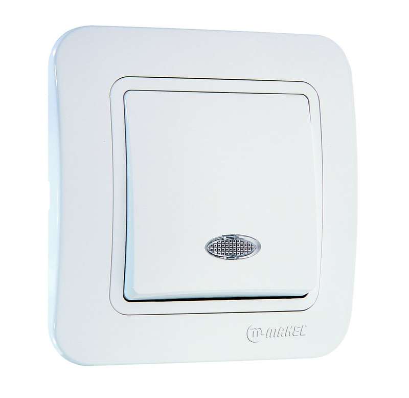 Выключатель 1-кл. СП Lillium 10А IP20 с подсветкой бел./бел. Makel 70021
