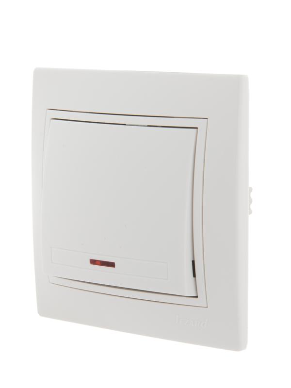 Выключатель 1-кл. СП Mira 10А IP20 с подсветкой с бел. вставкой бел. LEZARD 701-0202-111