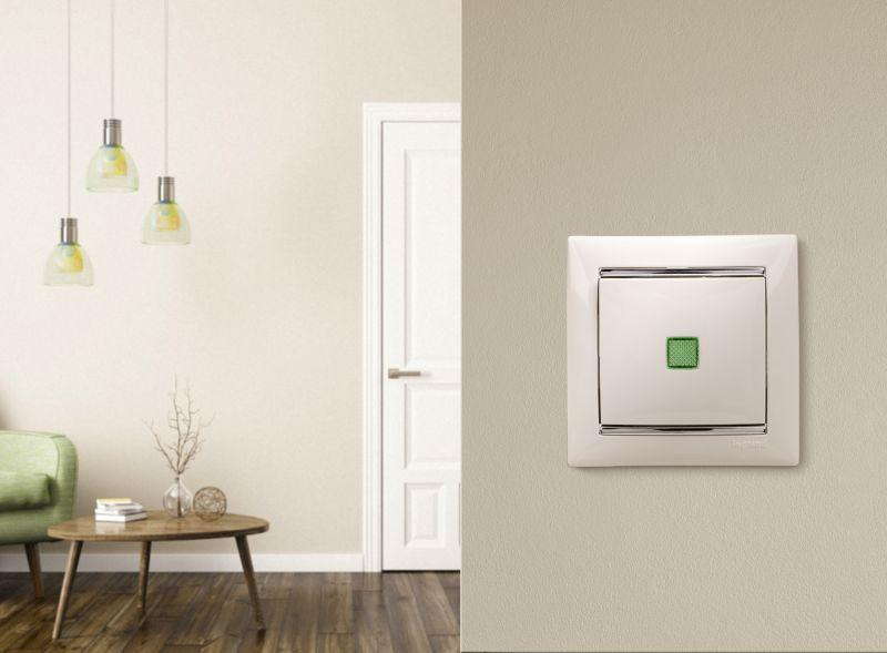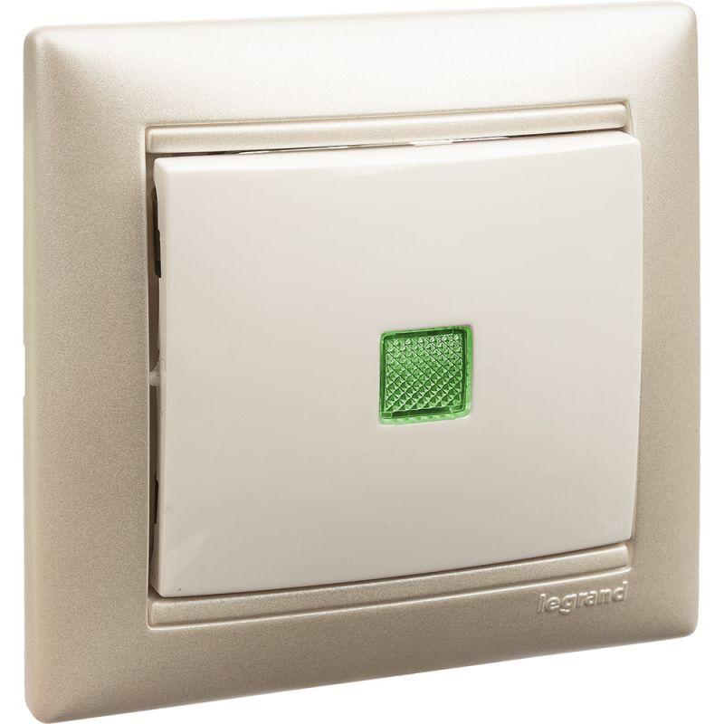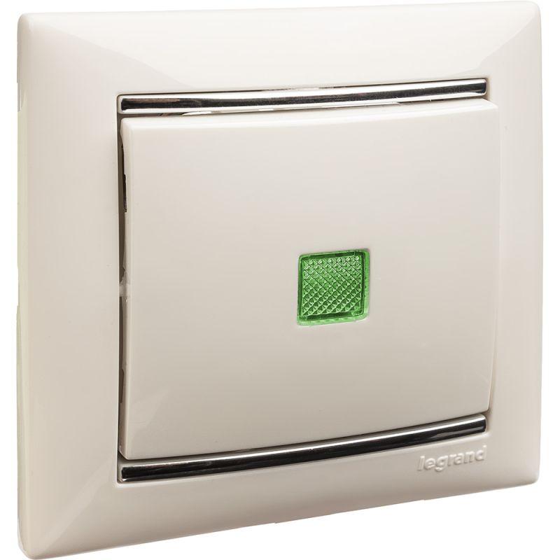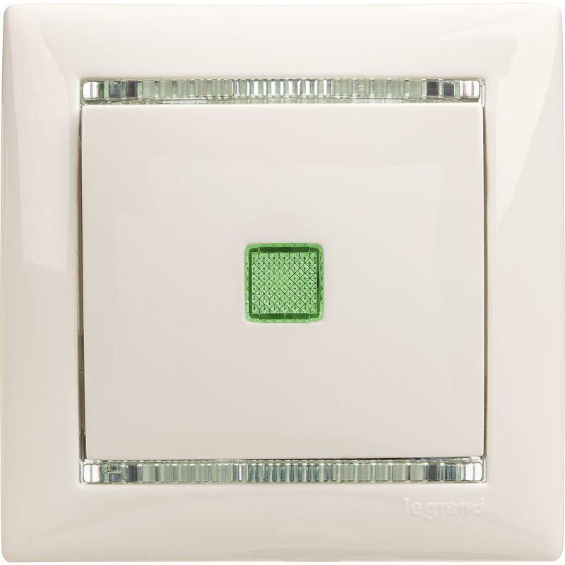 Выключатель 1-кл. СП Valena 10А IP31 250В с зел. индикацией механизм бел. Leg 774410
