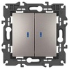 Выключатель 2-кл. Elegance 14-1105-16 250В 10АХ с подсветкой титан Эра Б0065789