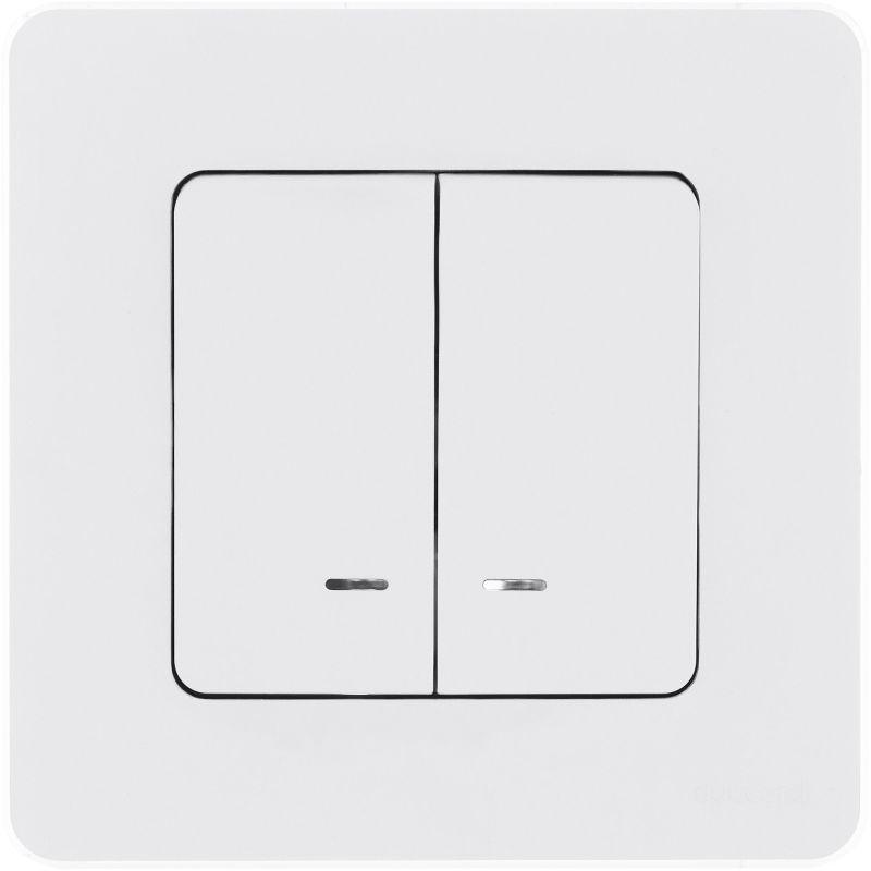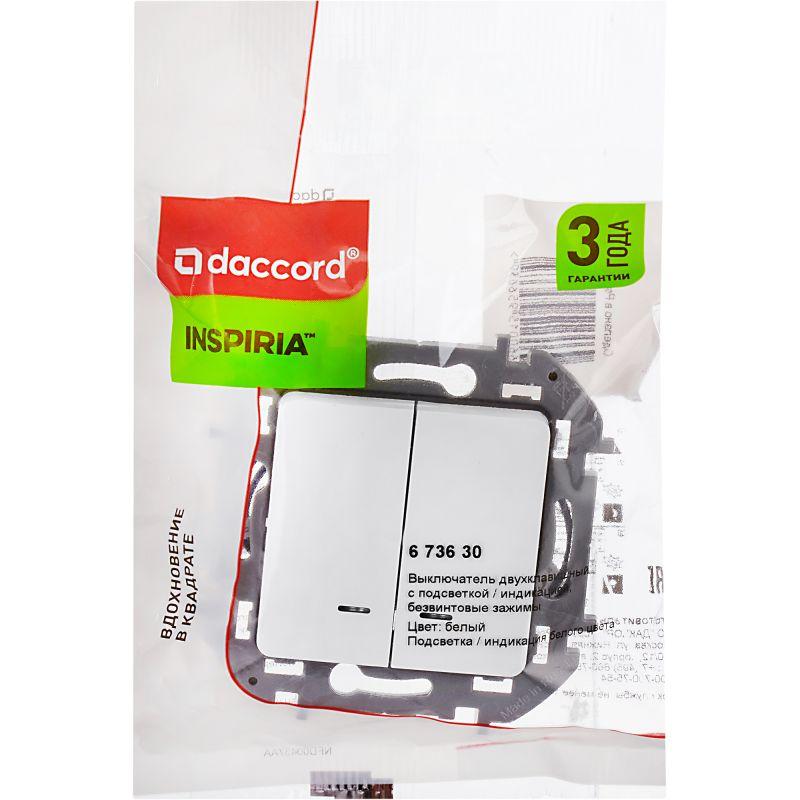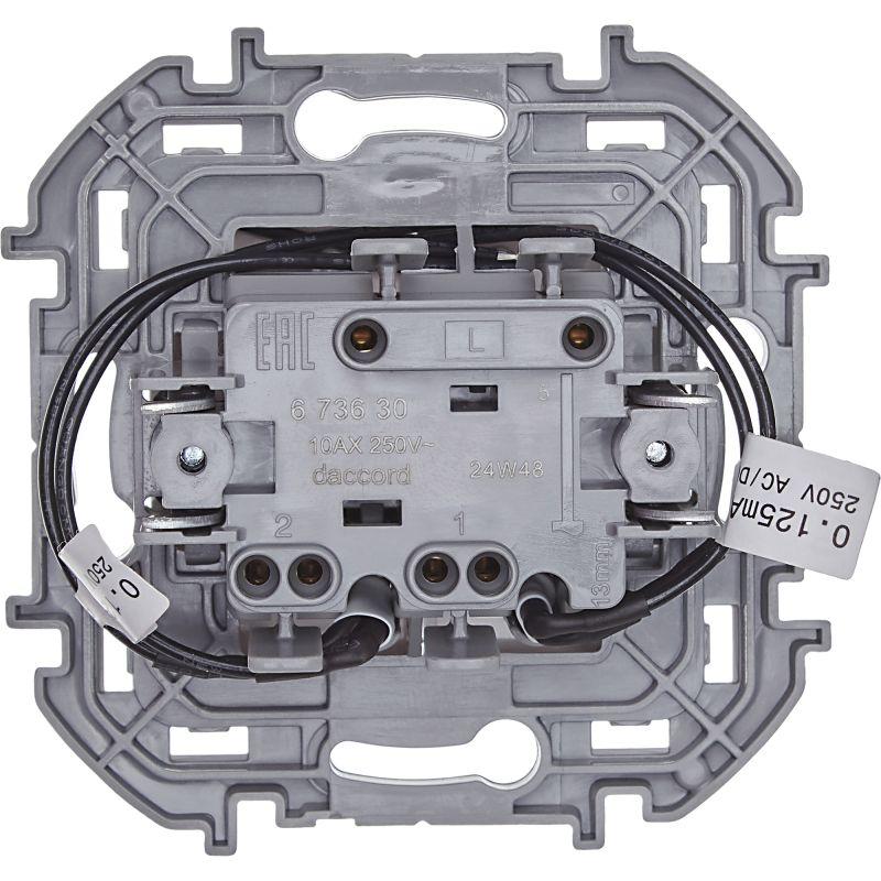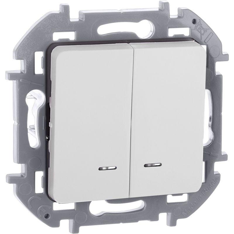 Выключатель двухклавишный с подсветкой/индикацией Legrand Inspiria для скрытого монтажа, цвет "Белый", номинальный ток 10 А, напряжение ~250В. Предназначен для установки в электрических сетях жилых и общественных зданий и используется для управления приборами освещения, вентиляции и т.д. Используется для независимой коммутации двух нагрузок с одного места. Оснащен двумя светодиодными лампами для подсветки или индикации. Особенности изделия: - Компактный механизм с глубиной всего 20 мм. комфортно размещается в различных монтажных коробках. - Материал клавиш - глянцевый пластик АБС, стоек к выгоранию и загрязнениям. - Все токоведущие части выключателя имеют защиту от случайного прикосновения. - Безвинтовые зажимы для присоединения проводов обеспечивают быстрое подключение и отключение, гарантируют надежное и долговечное соеднинение и не требуют обслуживания. - Удобные широкие толкатели облегчают работу по демонтажу провода. - Улучшенная эргономика снижает вероятность искрения при коммутации светодиодов. - Ход клавиши короткий, не громкий. - Две универсальные LED-лампы белого цвета с низким энергопотреблением 0.125мА и возможностью замены - Благодаря свободной схеме подключения, лампа подсветки либо облегчает ориентирование в темноте, либо информирует о включении нагрузки. - Клавиши оборудованы линзами для заметного светового сигнала подсветки или индикации Особенности серии Inspiria: Суппорт и корпус механизма изготовлены из высококачественного поликарбоната, обладают высокой прочностью, не проводят электрический ток, не поддерживают горение. Специальный профиль внешнего контура суппорта обеспечивает простоту выравнивания и безошибочность многопостового монтажа. Скрытые острые крепёжные лапки с широким углом раскрытия обеспечивают травмобезопасный монтаж и надёжную фиксацию в монтажной коробке. Удобная и информативная маркировка сокращает время на подготовку проводов.