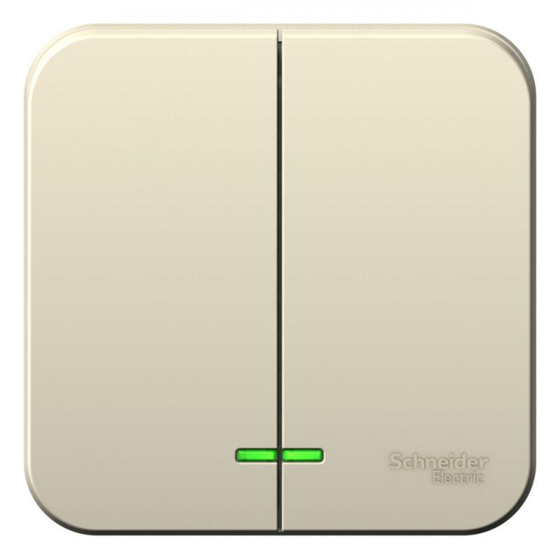 Выключатель Systeme Electric (ранее Schneider Electric) BLANCA (молочный, открытой установки) с изолирующей пластиной двухклавишный предназначен для сетей до 250В, на ток до 10А. Подсветка делает его легко находимым в отсутствие освещения. Двухклавишный выключатель позволяет управлять двумя источниками света из одной точки.