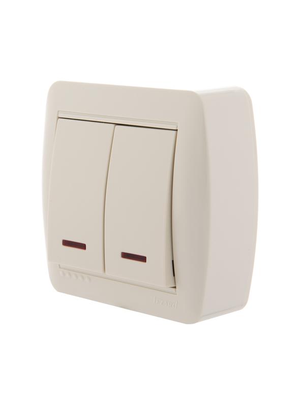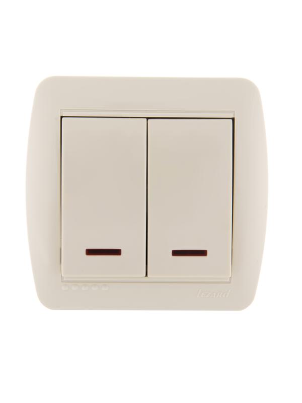 Выключатель 2-кл. ОП Demet 10А IP20 с подсветкой крем. LEZARD 711-0300-112