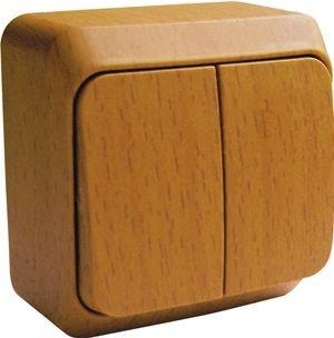 Выключатель Systeme Electric (ранее Schneider Electric) ЭТЮД (бук, открытой установки) двухклавишный предназначен для применения в сетях до 250В, на ток до 10А. Две клавиши позволяют управлять двумя источниками света с одной точки. Изделия цвета Бук обладают уникальным рисунком, напоминающим древесный сруб. Он прост в установке и удобен применении. Сделано в России.