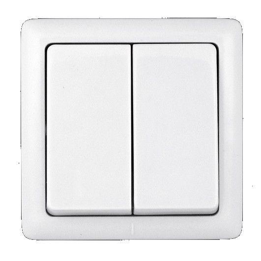 Выключатель двухклавишный Systeme Electric (ранее Schneider Electric) РОНДО (открытой установки, цвет белый) предназначен для сетей до 250 В, на ток до 6 А. - Выключатель изготовлен из ABS-пластика, прост в установке, прочен и надежен в применении. - Двухклавишный выключатель позволяет управлять двумя источниками света с одной точки. - Сделано в России.