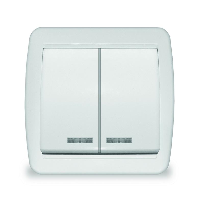 Выключатель 2-кл. ОП Клио с подсветкой 10А IP44 бел. UNIVersal К2227