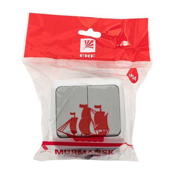 Выключатель двухклавишный EKF серии Мурманск позволяет организовать электроснабжение в условиях высокой влажности и пыльных помещениях, на улице при условии установки под навесом. Ступенчатые герметичные вводы с двух сторон изделия обеспечивают надежную защиту, позволяя использовать устройство в агрессивных условиях.