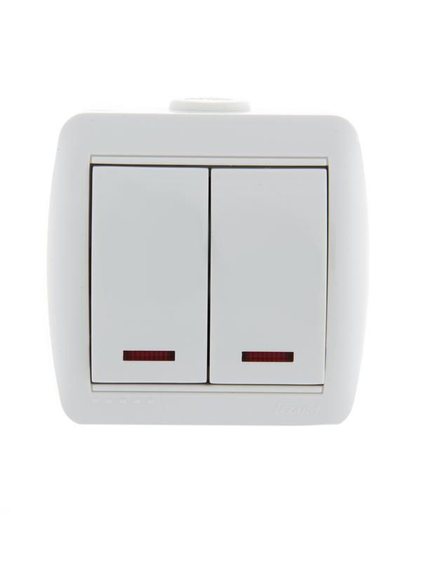 Выключатель 2-кл. ОП Nata 10А IP20 с подсветкой бел. LEZARD 710-0200-112