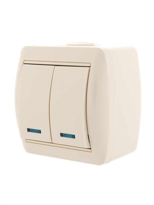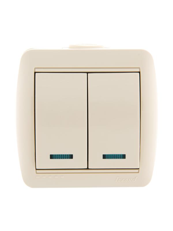 Выключатель 2-кл. ОП Nata 10А IP20 с подсветкой крем. LEZARD 710-0300-112