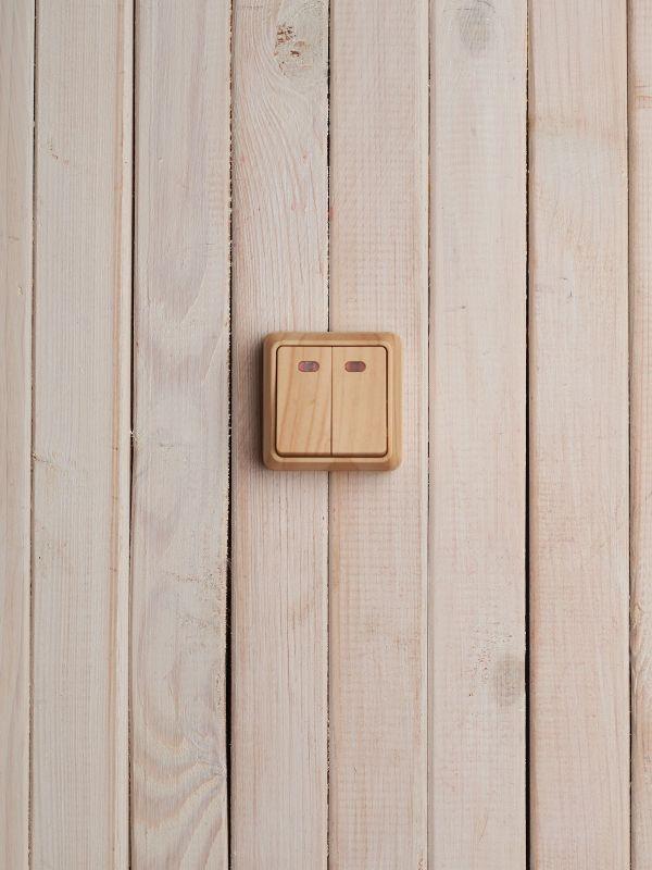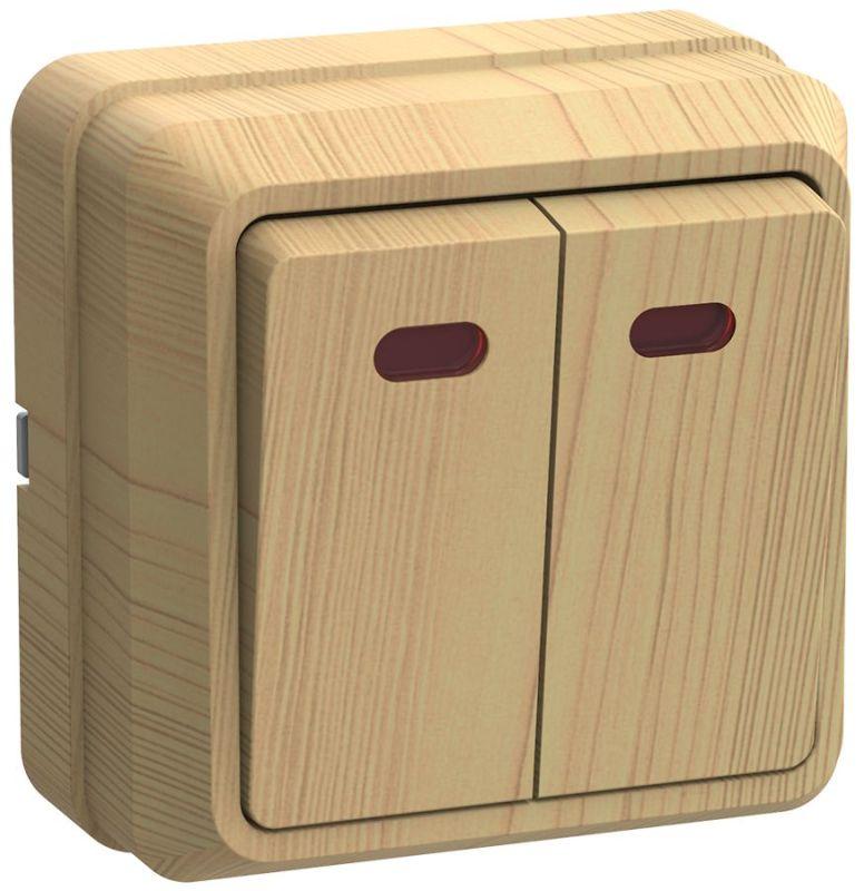 Выключатель 2-кл. ОП Октава 10А IP20 ВС20-2-1-ОС с индикацией сосна IEK EVO21-K03-10-DC