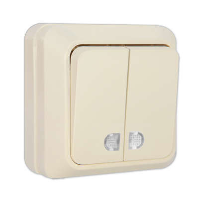 Выключатель 2-кл. ОП Олимп 10А IP20 с подсветкой сл. кость UNIVersal Б-О0123