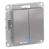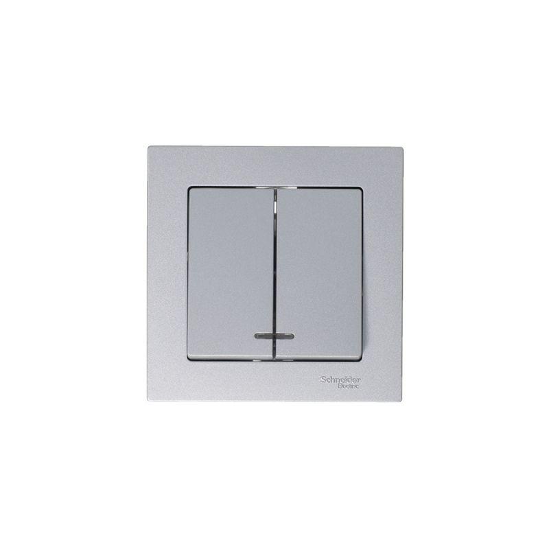 Механизм Systeme Electric (ранее Schneider Electric) серии AtlasDesign в цвете алюминий выключателя 2-клавишного c подсветкой подходит для сетей 250 В, на ток 10 А. - Благодаря светодиодной подсветке синего цвета изделие легко найти в темноте. - Двухклавишный выключатель позволяет управлять двумя источниками света с одной точки. - Лицевые детали из качественного ABS-пластика, устойчивого к царапинам и УФ-излучению. - Усиленные прямые монтажные лапки для лучшей фиксации механизма в монтажной коробке.