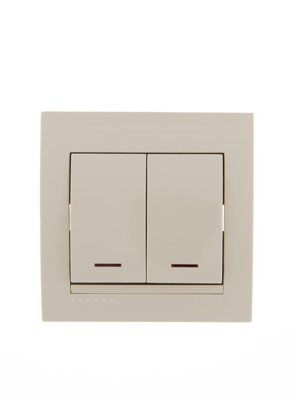 Выключатель 2-кл. СП Deriy 10А с подсветкой крем. LEZARD 702-0303-112