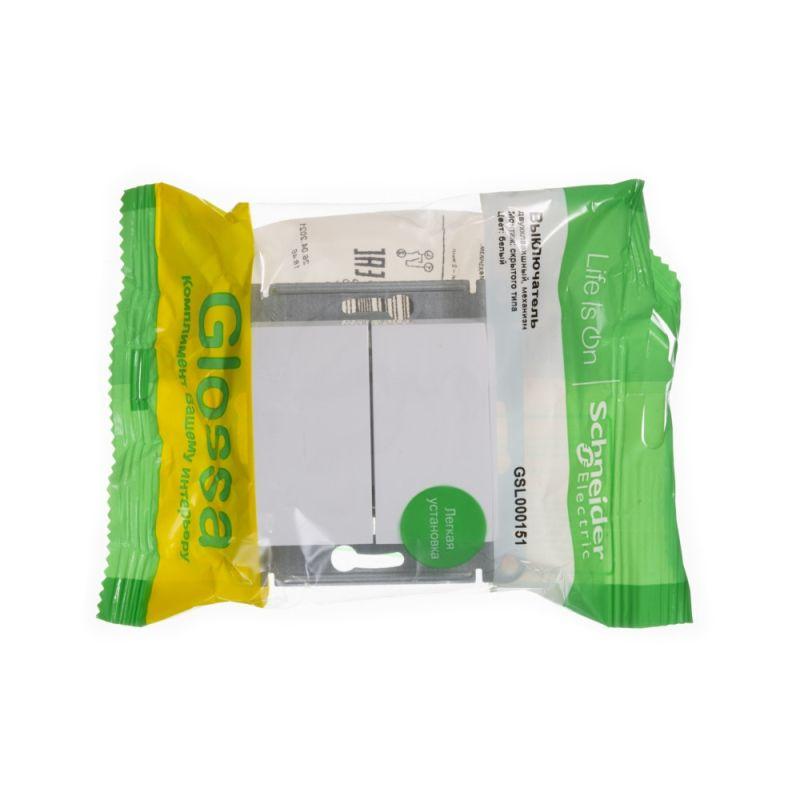 Механизм Systeme Electric (ранее Schneider Electric) серии Glossa (цвет белый) выключателя 2-клавишного подходит для сетей 250 В, на ток 10 А. - Двухклавишный выключатель позволяет управлять двумя источниками света с одной точки. - Выполнен из материала PС+ASA, стойкого к УФ-излучению и появлению царапин. - Эргономичные клеммы расположены в два ряда: сверху и снизу.