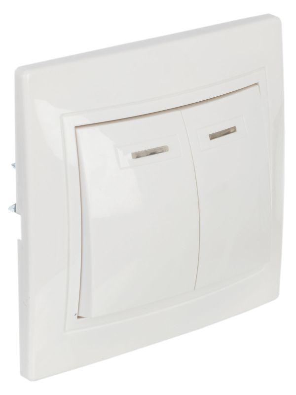 Выключатель 2-кл. СП Кварта 10А IP20 ВС10-2-1-КБ с индикацией бел. IEK EVK21-K01-10-DM