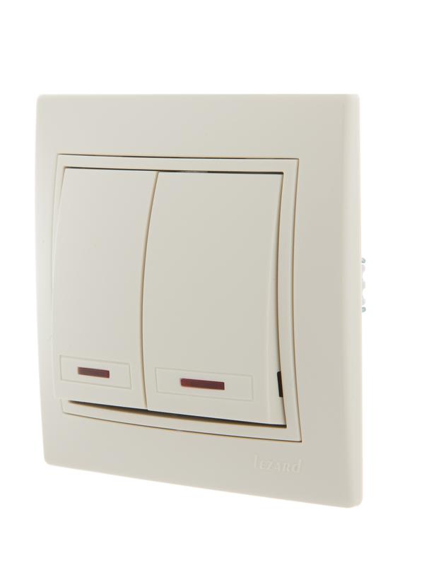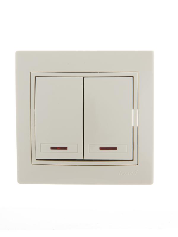 Выключатель 2-кл. СП Mira 10А IP20 с подсветкой со вставкой крем. LEZARD 701-0303-112