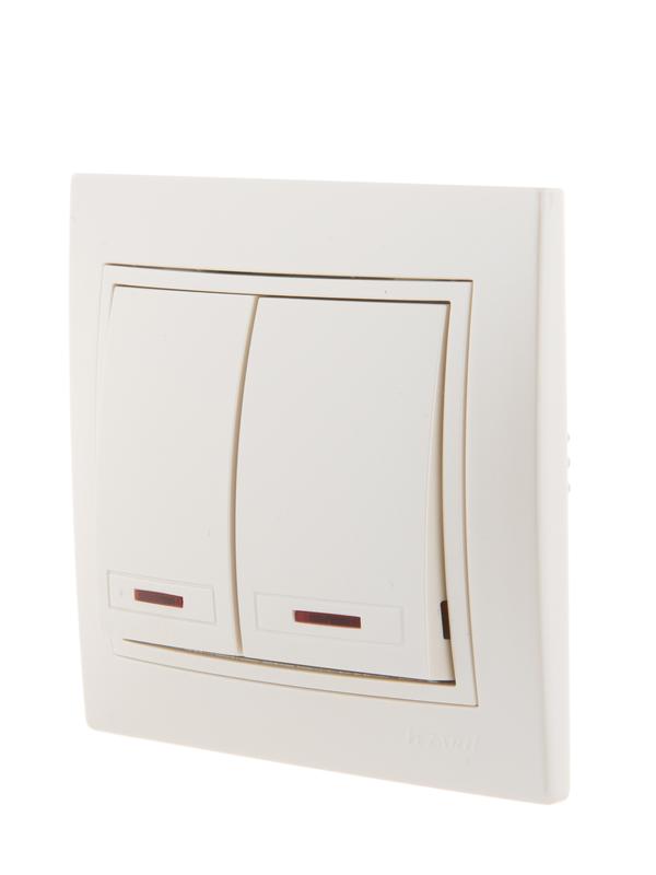 • НАЗНАЧЕНИЕ Выключатель 2-клавишный это двухпозиционный коммутационный аппарат с замыкающими (нормально-разомкнутыми) контактами, предназначенный для работы в сетях с напряжением до 1000 вольт, не предназначенный для отключения токов короткого замыкания, без специальных устройств дугогашения, местного управления, с ручным приводом. • ОБЛАСТЬ ПРИМЕНЕНИЯ В основном применяются для включения и выключения освещения в бытовых и производственных условиях. • ПРИНЦИП ДЕЙСТВИЯ Принцип действия основан на коммутации контактов механическим способом (нажатием) , при этом положения коммутации фиксированы и позволяют находится в этом режиме достаточно долго, вплоть до следующего воздействия. • ДОПОЛНИТЕЛЬНЫЕ ПРИНАДЛЕЖНОСТИ ИЛИ АКСЕССУАРЫ