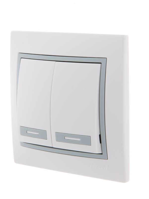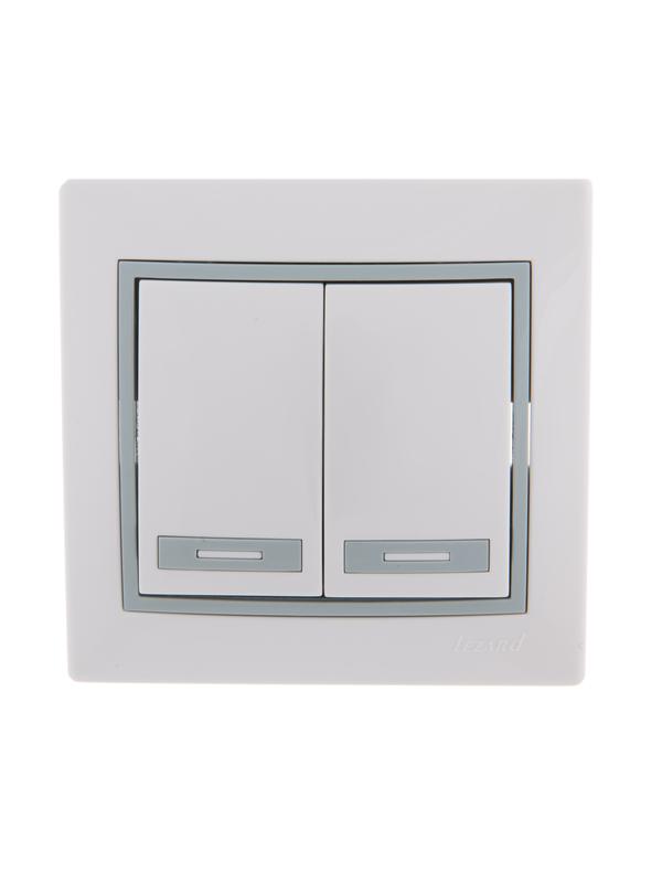 Выключатель 2-кл. СП Mira 10А IP20 с сер. вставкой бел. LEZARD 701-0215-101