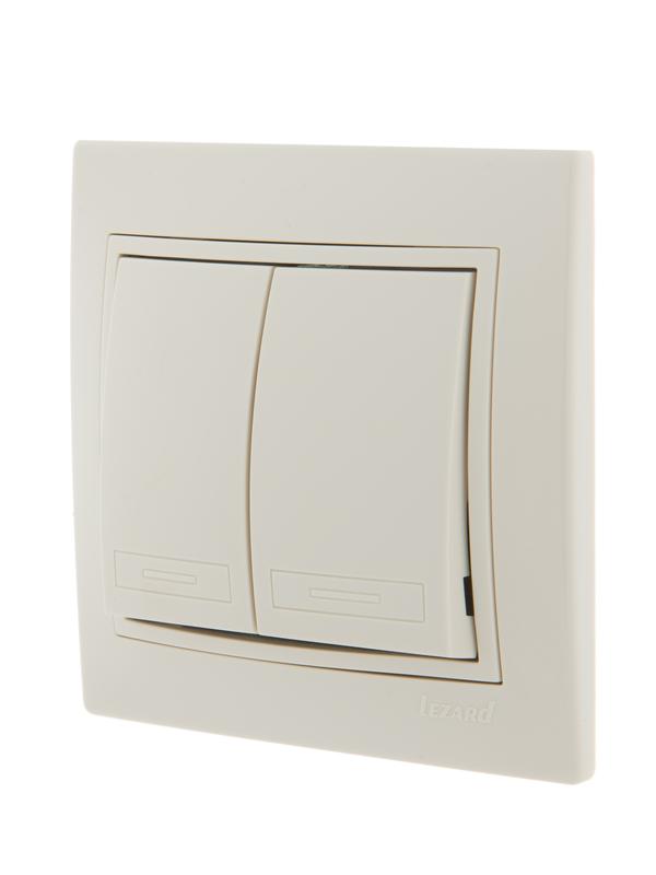 Выключатель 2-кл. СП Mira 10А IP20 со вставкой крем. LEZARD 701-0303-101