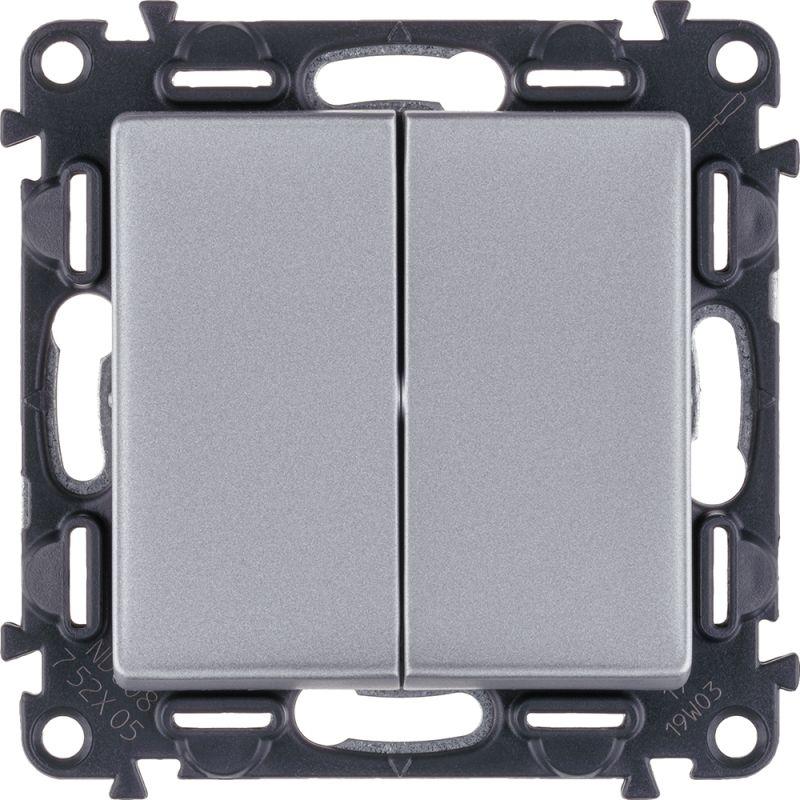 Выключатель 2-кл. СП Valena Life 10А IP20 250В с лицев. панелью безвинтов. зажимы механизм алюм. Leg 752605