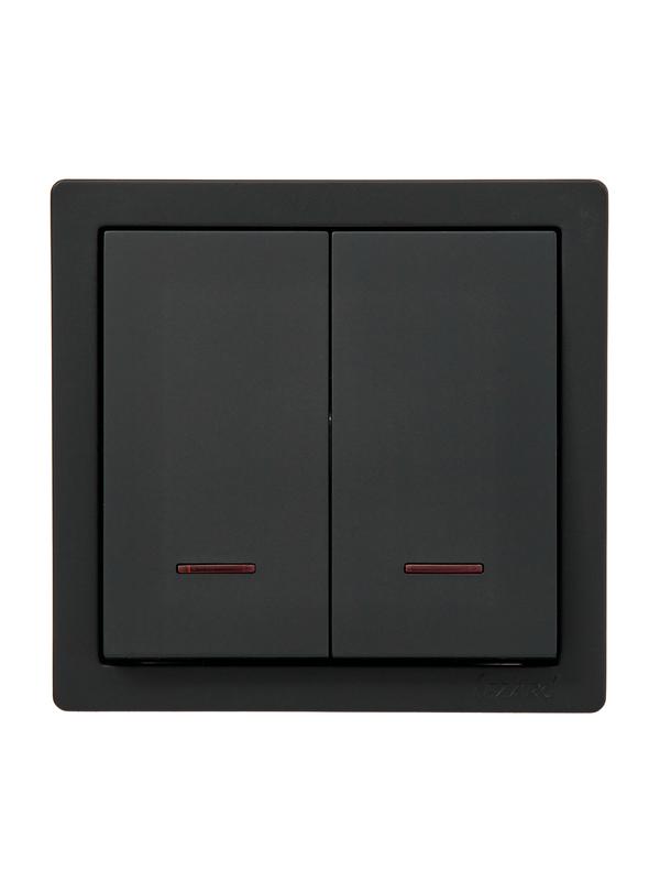 Выключатель 2-клав. с инд. LETO черн. бархат LEZARD 752-4200-112