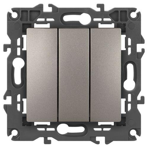 Выключатель 3-клавишный серии Эра Elegance цвет титан 14-1107-16. Характеристики 10А 250В. Винтовой зажим. Рамки приобретаются отдельно.