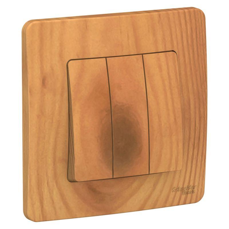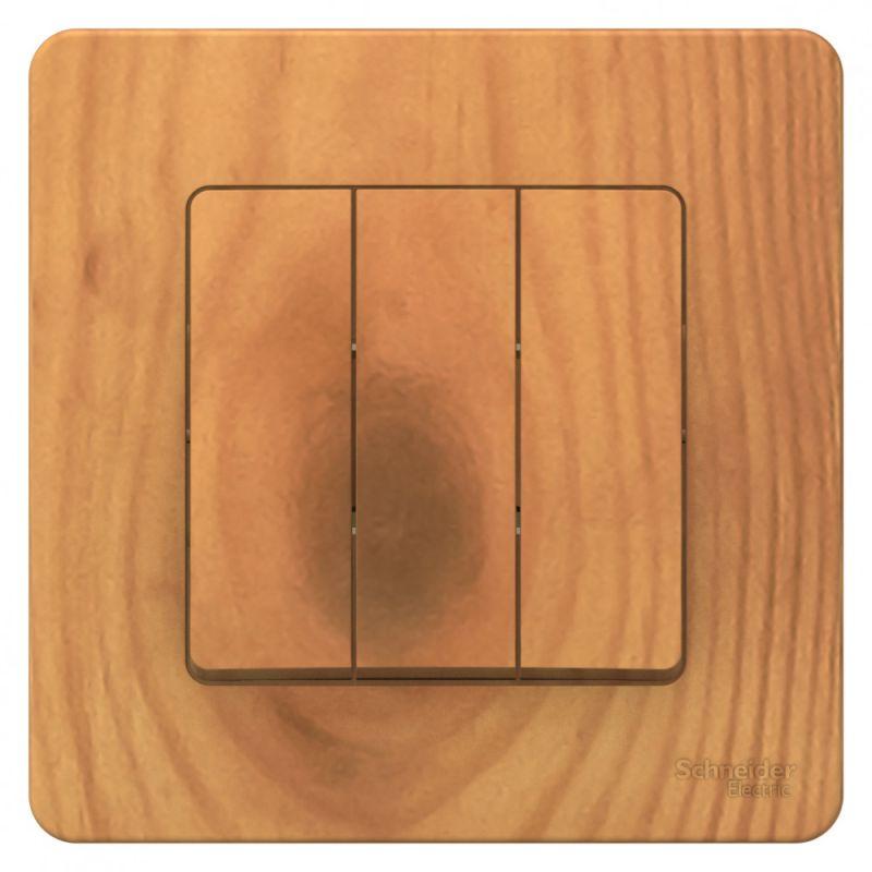 Выключатель Systeme Electric (ранее Schneider Electric) BLANCA (ясень, скрытой установки) трехклавишный предназначен для сетей до 250В, на ток до 10А. Подсветка делает его легко находимым в отсутствие освещения. Трехклавишный выключатель позволяет управлять тремя источниками света из одной точки. Изделия цвета Ясень обладают уникальным рисунком, напоминающим древесный сруб.