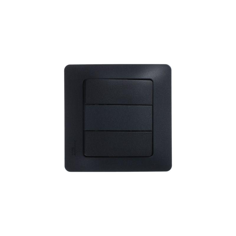 Механизм Systeme Electric (ранее Schneider Electric) серии Glossa (цвет антрацит) выключателя 3-клавишного подходит для сетей 250 В, на ток 10 А. - Трёхклавишный выключатель позволяет управлять тремя источниками света из одной точки. - Выполнен из материала PС+ASA, стойкого к УФ-излучению и появлению царапин. - Эргономичные клеммы расположены в два ряда: сверху и снизу.