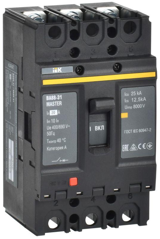 Автоматический выключатель в литом корпусе ВА88 MASTER предназначен для защиты электрических сетей от токов короткого замыкания, токов перегрузки, недопустимых снижений напряжения, а также для проведения тока в нормальном режиме. Автоматические выключатели производятся в 6 типоразмерах, оснащены комбинированным расцепителем (тепловой и электромагнитный) на токи от 20 до 800 А. Рабочее напряжение до 690 В. Конструкция автоматического выключателя предусматривает возможность самостоятельной установки дополнительных устройств на объекте заказчика.