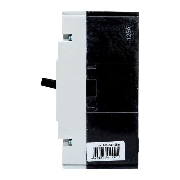 Выключатель ВА-99М выполнен в виде моноблока и состоит из основания и крышки с фальшпанелью, в которой имеется окно для рукоятки управления и толкатель кнопки «Тест» - проверки механизма отключения выключателя. Основание выполнено из термостойкой пластмассы, не поддерживающей горение и являющейся несущей конструкцией для присоединительных зажимов, неподвижных и подвижных контактов с системой дугогашения, механизма управления, блока защиты от сверхтоков. Крышка закрывает все подвижные элементы механизма управления и внутренние токоведущие части.