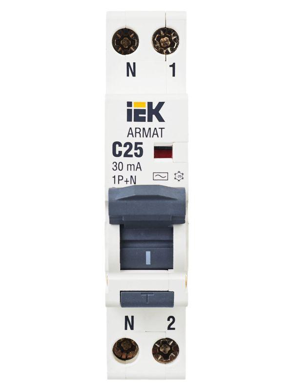 Выключатель автоматический дифференциального тока 2п (1P+N) C 25А 30мА тип AC АВДТ B06S 18мм ARMAT IEK AR-B06S-1N-C25C030