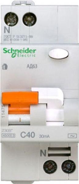Выключатель автоматический дифференциального тока 2п (1P+N) C 40А 30мА тип AC 4.5кА К АД63 2мод. Домовой SchE 11475