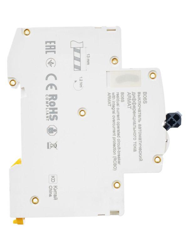 Выключатель автоматический дифференциального тока 2п (1P+N) C 6А 30мА тип AC АВДТ B06S 18мм ARMAT IEK AR-B06S-1N-C06C030
