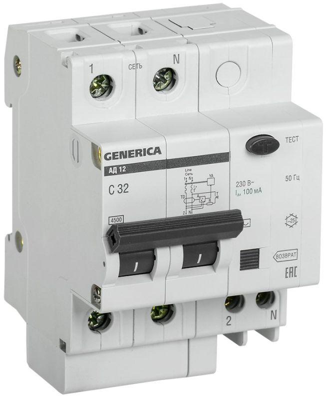 Выключатель автоматический дифференциального тока 2п 32А 100мА АД12 GENERICA MAD15-2-032-C-100