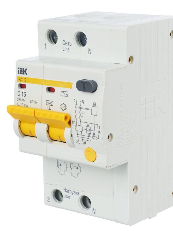 Выключатель автоматический дифференциального тока 2п C 16А 10мА тип AC 4.5кА АД-12 KARAT IEK MAD10-2-016-C-010