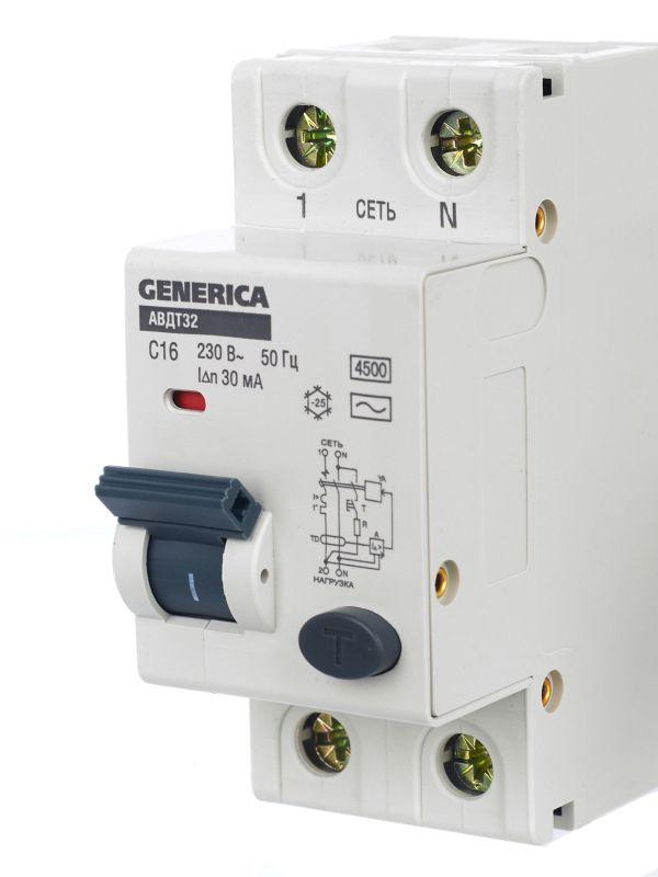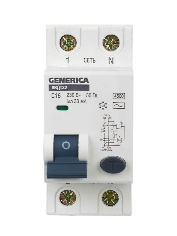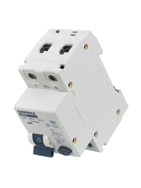 Выключатель автоматический дифференциального тока 2п C 16А 30мА тип AC 4.5кА АВДТ 32 C16 GENERICA MAD25-5-016-C-30