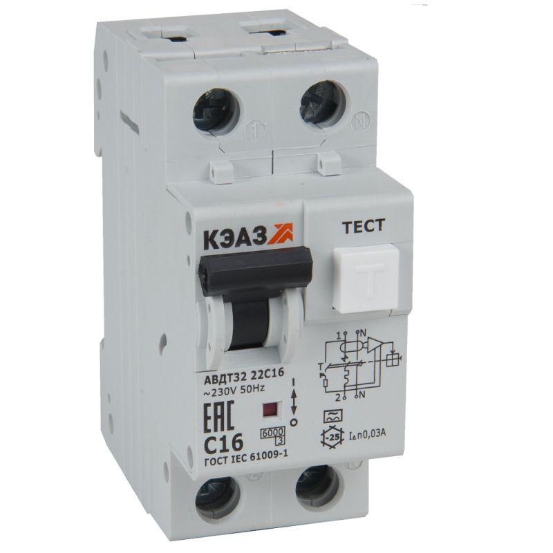 Выключатель автоматический дифференциального тока 2п C 32А 30мА тип A 6кА АВДТ32-22C32 A УХЛ4 КЭАЗ 228068
