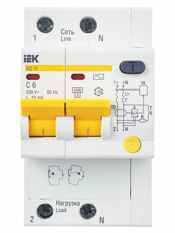 Выключатель автоматический дифференциального тока 2п C 6А 10мА тип AC 4.5кА АД-12 KARAT IEK MAD10-2-006-C-010